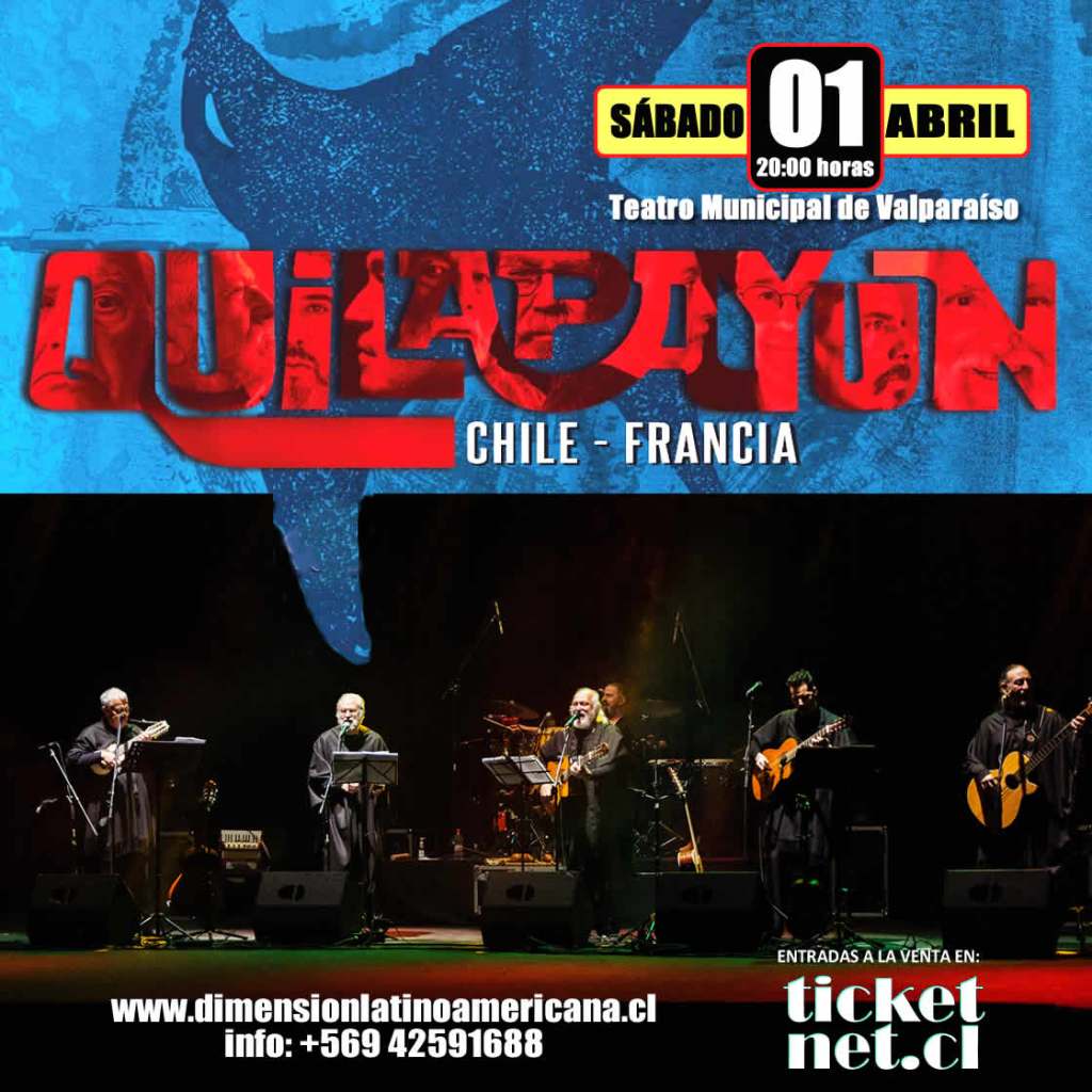 En grande será el concierto que realizará Quilapayún en Valparaíso el 1 de abril en el Teatro Municipal de la Ciudad Puerto en el marco de su gira «Chile-Francia», la última de Carlos Quezada en nuestro país.