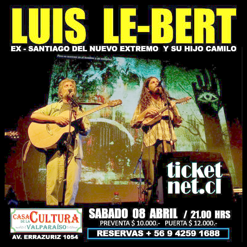 Con una selección de las canciones más clásicas del Canto Nuevo chileno de su propia autoría y que son parte del cancionero popular chileno, como “A mi ciudad”, “Simplemente” y “Linda la minga”, entre muchas otras, además de sus nuevas creaciones publicadas en sus cuatro discos solistas, Luis Le-Bert ofrecerá un concierto íntimo en la Casa de la Cultura de Valparaíso junto a su hijo Camilo el próximo sábado 8 de abril, a las 21:00 hrs., en la Casa de la Cultura de Valparaíso