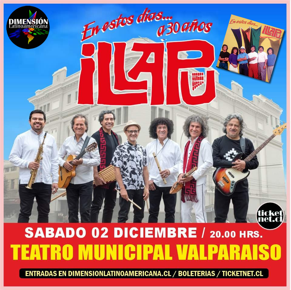 Illapu celebra los 30 años de la publicación de su disco «En estos días», el más exitoso del grupo y el más vendido en la historia de la música chilena, en el Teatro Municipal de Valparaíso.