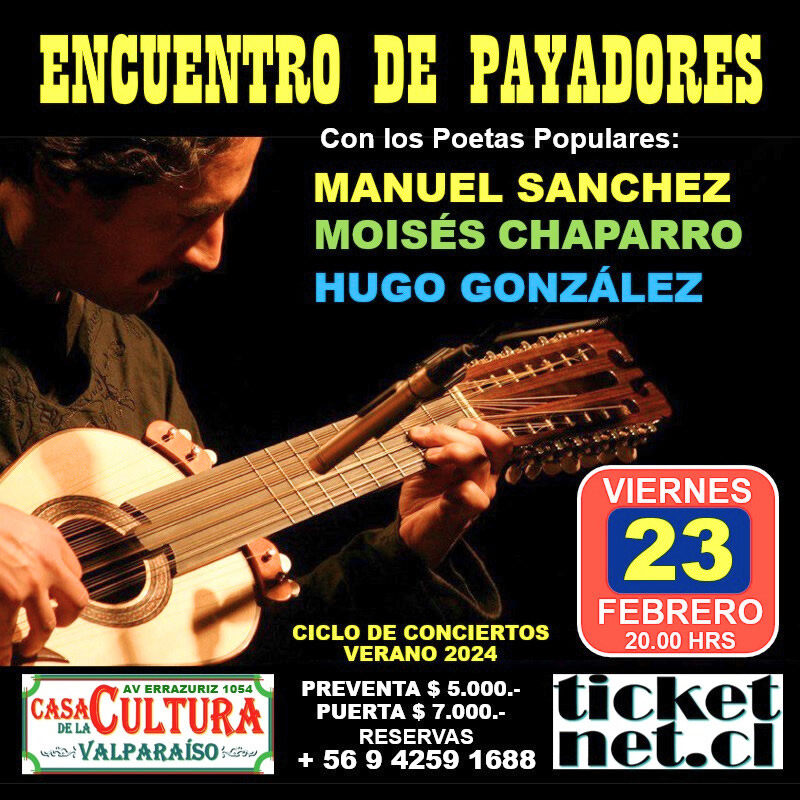 El canto a lo humano y lo divino en las voces y guitarras de Manuel Sánchez, Moisés Chaparro y Hugo González, grandes cultores del arte poético musical, en el principal centro cultural porteño.